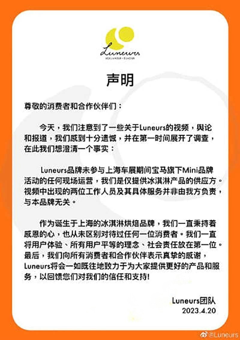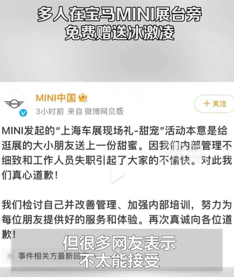 4月20日,上海车展发生了一次令网友大跌眼镜的骚操作,宝马展台的中国女孩子面对中国人前来免费领取冰淇淋就说发完了!而仅仅过去几秒来了外国人,立马细心发冰淇淋,不会吃还的付上笑脸耐心教,次事件一经曝光迅速冲上热搜!狗洋奴的嘴脸实在太恶心了!畜生!!