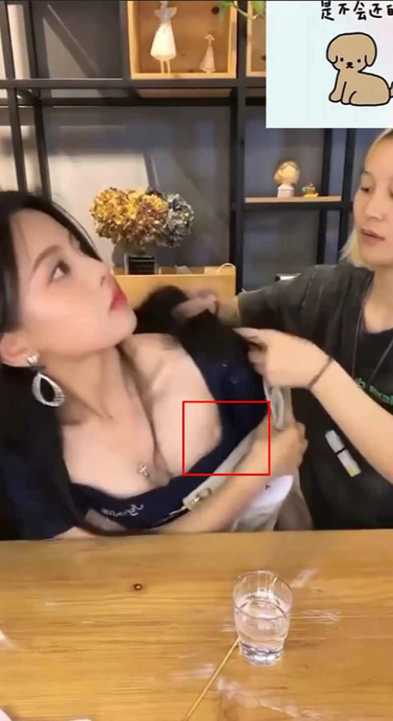 视频中杨超越正在吃玉米,一旁的助理帮忙脱掉外套,意外走光,看截图像是乳头,但是视频里看着好像不是乳头,更像是贴了个什么东西,可能是乳贴,不过杨超越这个胸确实诱人,自从看到她白色礼服的照片心里已经疯狂长草,太顶了!还得是明星!可惜露得不多,可惜了。