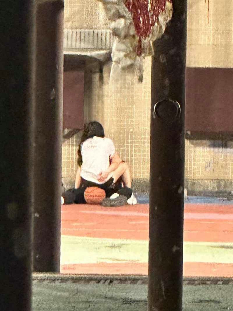 从现场画面来看,队长可能打球比较累了,女生明显占据了主动,小迷妹一上来就坐上了队长的大腿上!